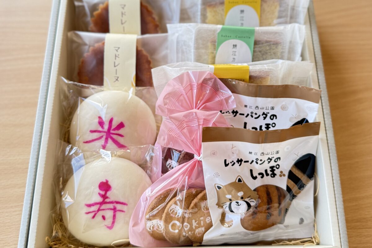 2025年10月31日 長寿のお祝い 最近お問合せが増えていました長寿のお祝いのお菓子 米寿だけでなく、古希、喜寿、白寿や百寿も! とてもおめでたいです^^ 長寿のお祝いにぴったりのお餅をいれた菓子箱をご用意しました。 1合サイズのお餅に日持ちのする焼き菓子の詰め合わせです お餅にはご希望の文字お書きします! 詳細は商品ページにもございますのでぜひご覧ください。