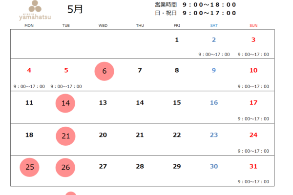 5月の営業日