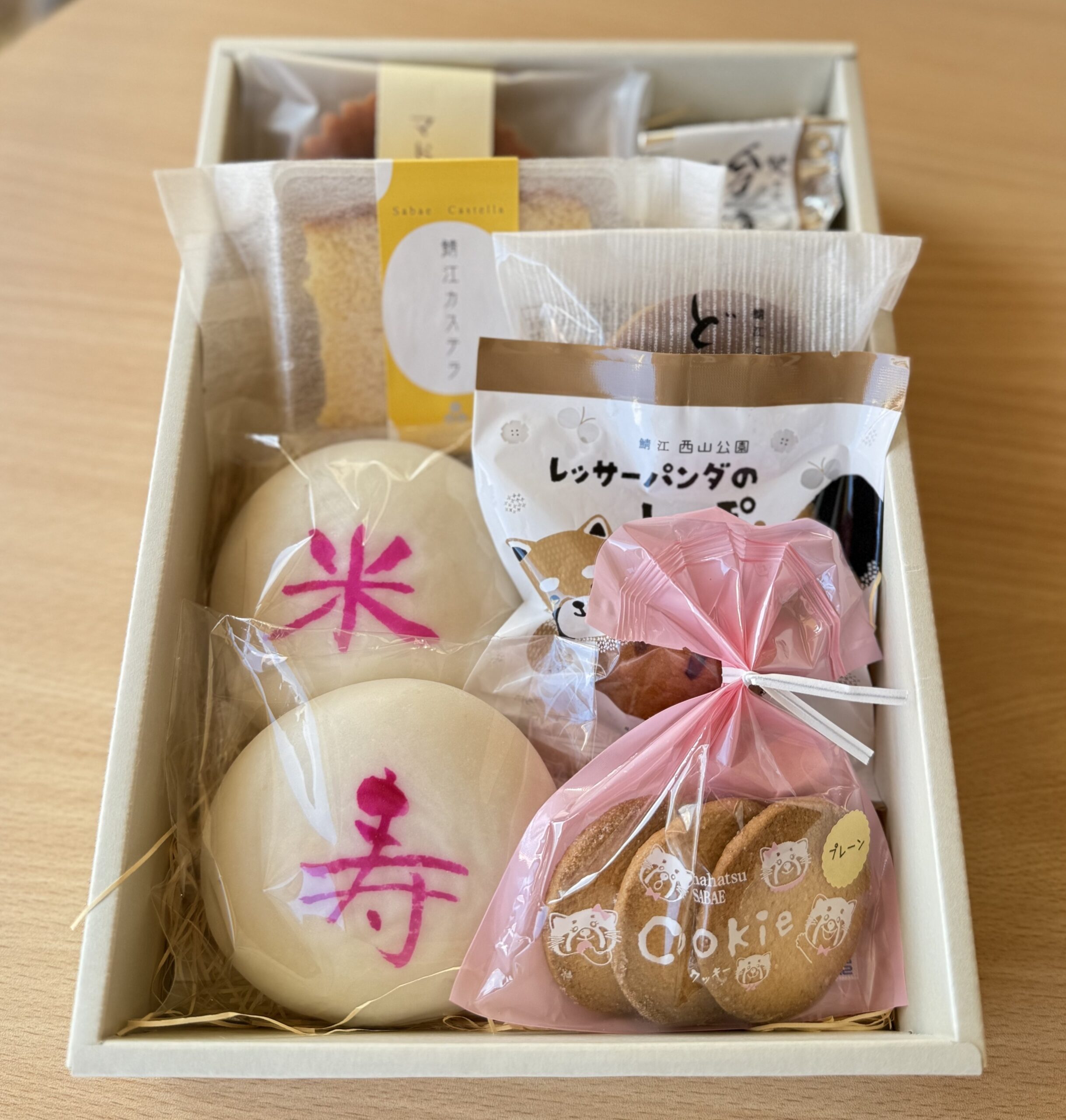 長寿のお祝いにぴったりのお餅を入れた菓子箱